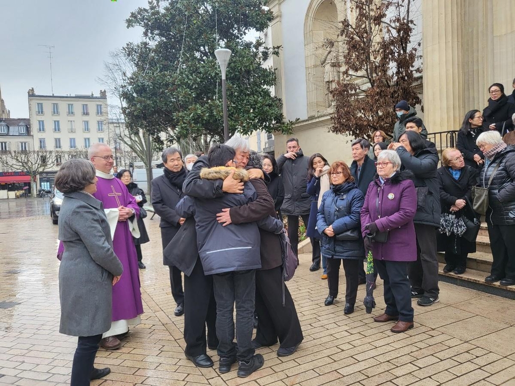 | ▲ 아내와 영원히 작별한 피아니스트 백건우 (뱅센<프랑스>=연합뉴스) 현혜란 특파원 = 피아니스트 백건우(77)가 30일(현지시간) 프랑스 파리 외곽 뱅센의 성당 앞에서 아내 고(故) 영화배우 윤정희 장례 미사가 끝난 뒤 가족들을 끌어안고 있는 모습. 2023.1.30 runran@yna.co.kr |