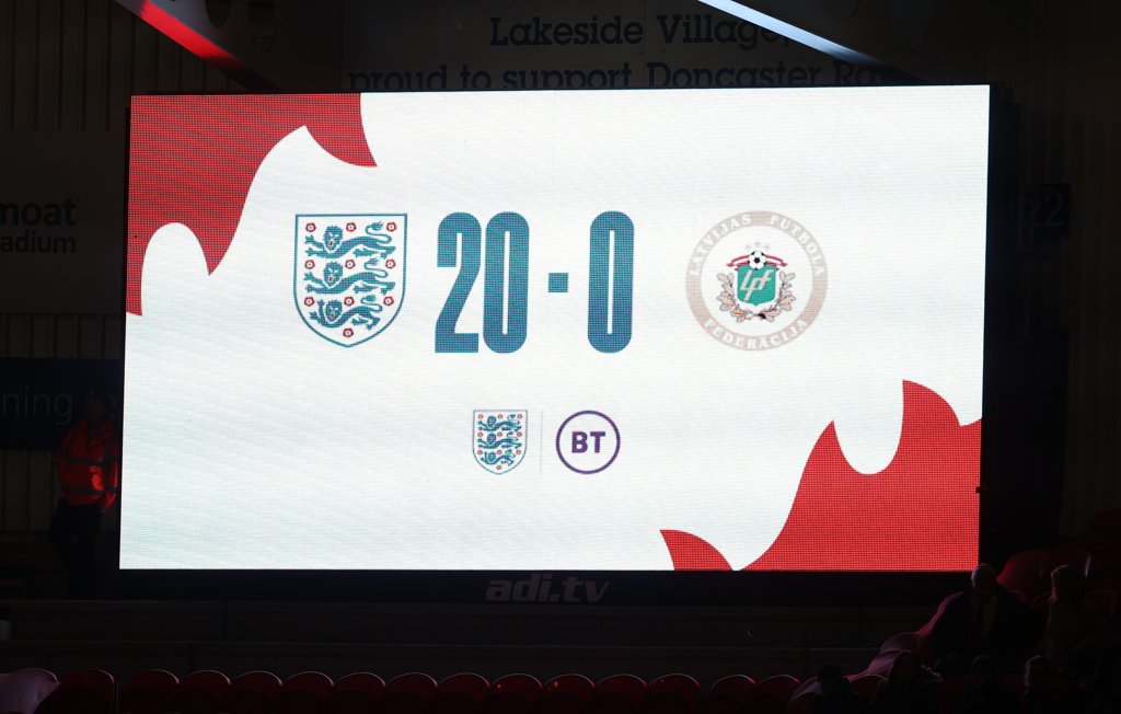 [월드&포토] 4분30초마다 한골…잉글랜드, 라트비아에 20-0 대승