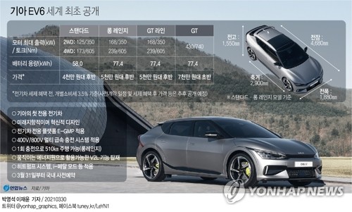 | ▲ [그래픽] 기아 EV6 세계 최초 공개 (서울=연합뉴스) 박영석 기자 = 기아는 30일 온라인을 통해 'EV6 디지털 월드 프리미어(세계 최초 공개)' 행사를 열고 EV6를 선보였다. zeroground@yna.co.kr 트위터 @yonhap_graphics 페이스북 tuney.kr/LeYN1 |