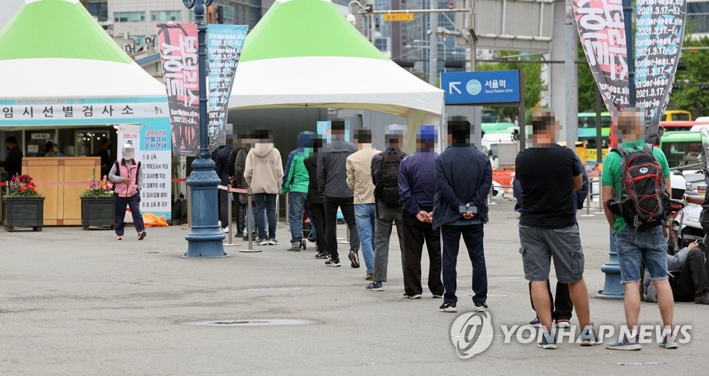 | ▲ Citizens line up to take new coronavirus tests at a temporary screening center in front of Seoul Station on April 24, 2021. (Yonhap) |