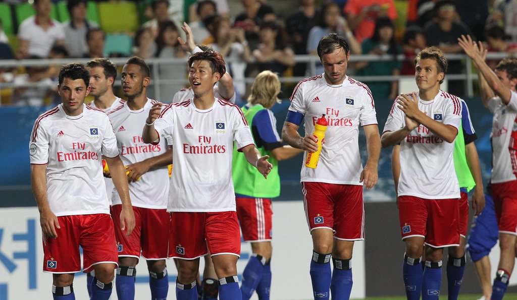 | ▲ 팬 환호에 답하는 손흥민 (수원=연합뉴스) 신영근 기자 = 22일 수원월드컵경기장에서 열린 2012 피스컵 대회 결승 한국의 성남 일화와 독일 함부르크SV의 경기에서 1대0으로 승리, 우승을 차지한 함부르크의 손흥민과 동료 선수들이 경기 후 손을 들어 팬들에게 인사하고 있다. 2012.7.22 drops@yna.co.kr http://blog.yonhapnews.co.kr/geenang |