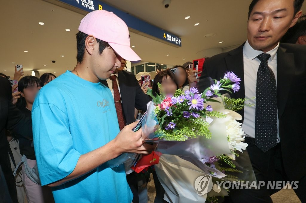 분홍색 모자에 하늘색 티셔츠를 입고 입국장에 모습을 드러낸 이강인은 마중 나온 팬들에게 인사한 뒤 곧바로 준비된 차량에 탑승해 이동했다.
