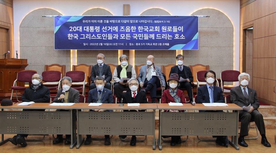 교계 원로들은 이날 서울 종로구 한국기독교회관 조에홀에서 발표한 호소문에서 이같이 밝히며 "편협한 국가주의를 넘어서 인류에게 희망을 줄 수 있는 지도자를 세우자"고 당부했다.
