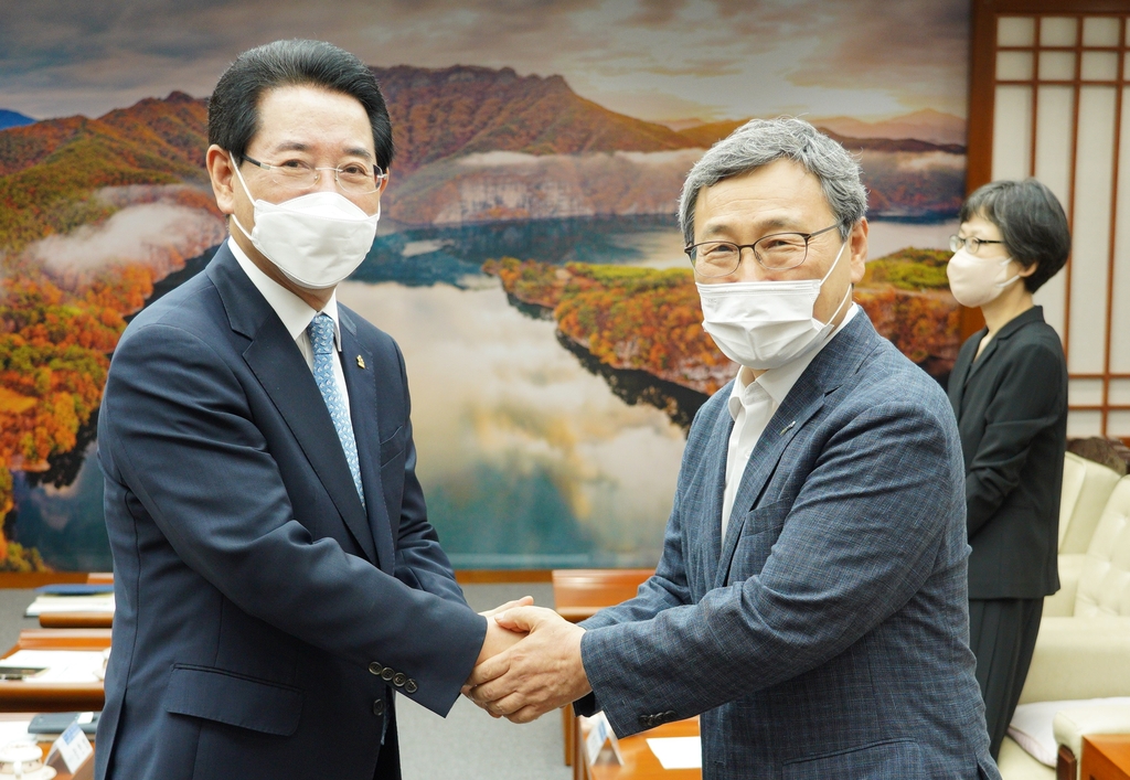 ▲ 정근식 진실화해위원장은 2일 오후 전남도청을 방문해 김영록 전남지사를 면담하고 과거사 진실 규명을 위한 협력 강화를 약속했다. 2기 진실·화해를위한과거사정리위원회에 접수된 한국전쟁 전후 민간인 집단희생 사건 1만1천531건 중 약 48%에 달하는 5천515건은 전남 지역에서 접수됐다. 두 사람은 또 6월부터 시작된 '여수·순천 10·19사건 진상규명 및 희생자 명예회복위원회'로의 사건 이관 작업에서 협력을 더욱 체계화하기로 했다. (서울=연합뉴스)
