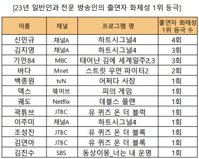 | ▲ 2023년 비드라마 출연자 화제성 [자료 굿데이터코퍼레이션. 재판매 및 DB 금지] |
