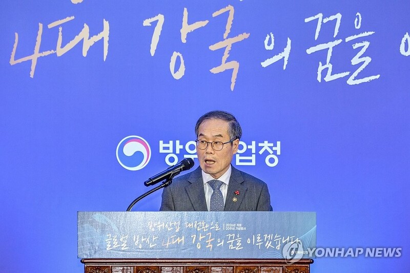| ▲ Defense Acquisition Program Administration chief Lee Yong-cheol gives a speech at an event marking the 20-year anniversary of the arms procurement agency on Jan. 2, 2026, in this file photo provided by the agency. (PHOTO NOT FOR SALE) (Yonhap) |