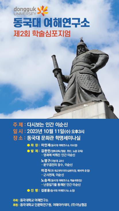 4일 학계에 따르면 동국대 여해연구소는 이달 11일 오후 서울캠퍼스 문화관 학명세미나실에서 '다시 보는 인간 이순신'을 주제로 한 학술 심포지엄을 연다.
