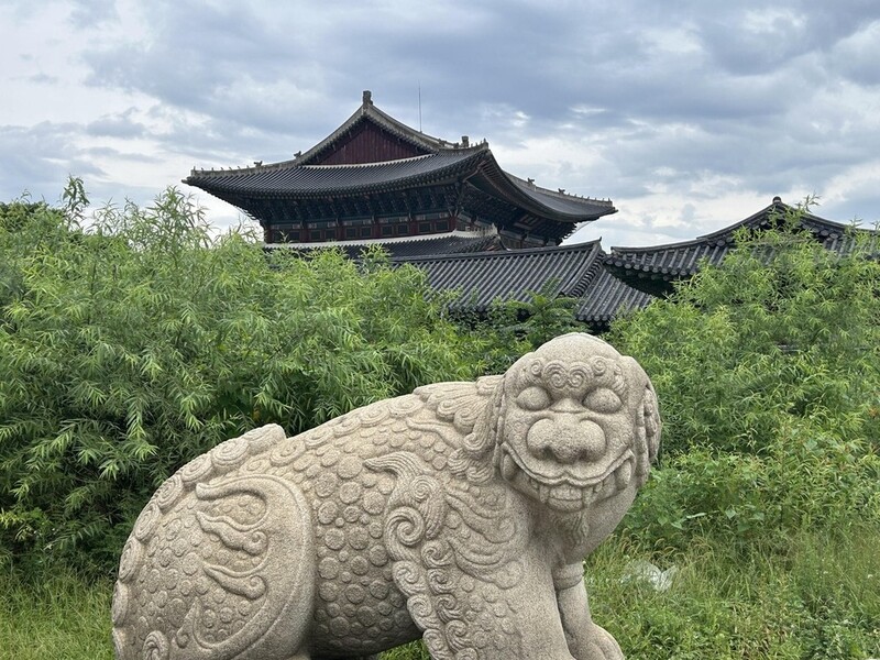 | ▲ 광화문 앞에 있던 해치상 (서울=연합뉴스) 김예나 기자 = 서울 종로구 경복궁 안에 놓여 있는 광화문 해치상 모습. 월대 복원과 함께 해치상 위치를 조정하기 위해 치목장에서 관리하고 있다. 사진은 지난 8월 말 촬영한 것. 2023.10.1 yes@yna.co.kr |
