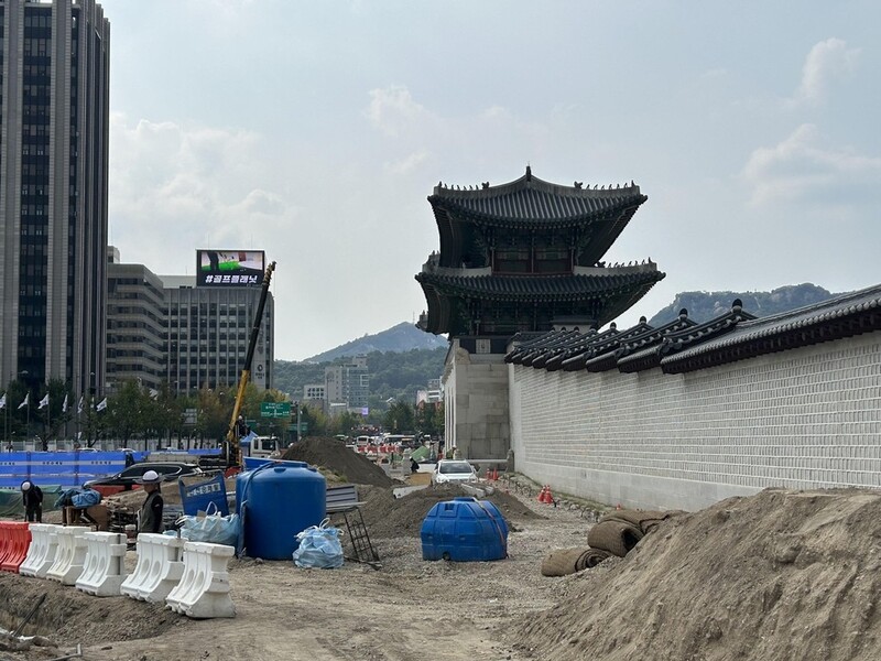 | ▲ 광화문은 '변신 중' (서울=연합뉴스) 김예나 기자 = 서울 경복궁 광화문 앞에서 공사 작업이 한창 진행 중인 모습. 사진은 9월 중순 촬영한 것. 2023.10.1 yes@yna.co.kr |