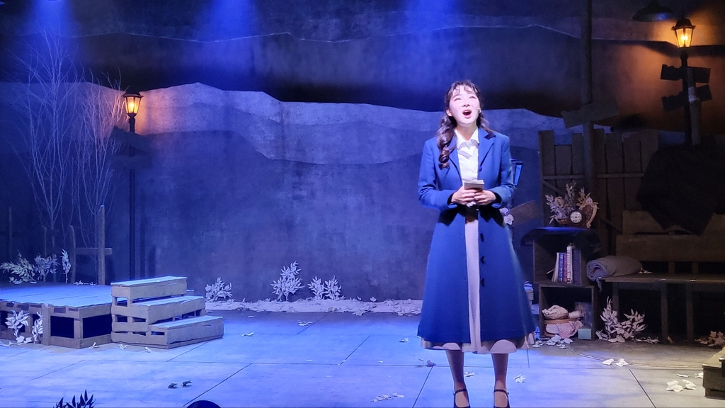 뮤지컬 '푸른 잿빛 밤'은 가로등과 민들레 등 보르헤르트가 남긴 시어와 심상을 무대 위로 구현했다.