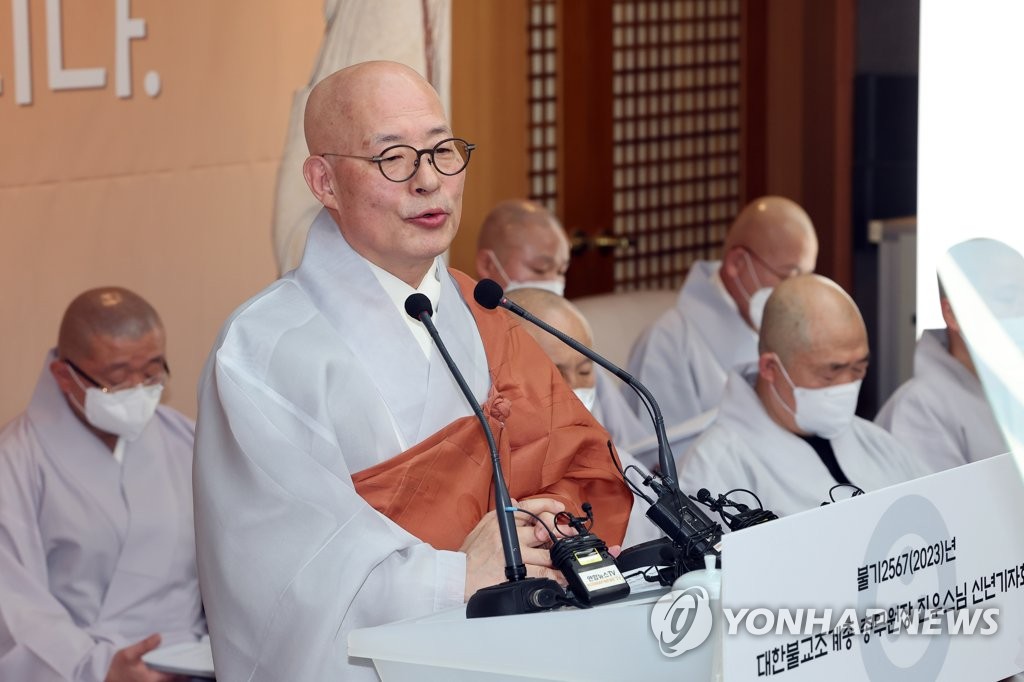 | ▲ 신년 기자회견하는 진우스님 (서울=연합뉴스) 박동주 기자 = 조계종 총무원장 진우스님이 11일 서울 종로구 한국불교역사문화기념관에서 신년 기자회견을 하고 있다. 2023.1.11 pdj6635@yna.co.kr |