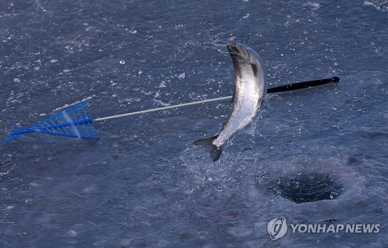 (화천=연합뉴스) 양지웅 기자 = "짜릿한 손맛을 기다렸습니다. 추울수록 더 즐겁네요."