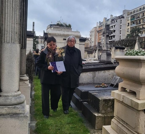 아내와 사별한 후 언론에 입장을 밝힌 적이 없는 백건우는 이날 오후 고인이 영면에 든 프랑스 파리 외곽에 있는 뱅센 묘지 앞에서 연합뉴스의 질문에 답했다.