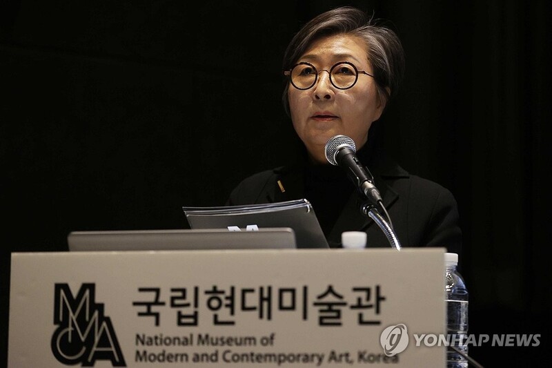 | ▲ 국립현대미술관 운영방향 (서울=연합뉴스) 강민지 기자 = 김성희 국립현대미술관 관장이 9일 오전 서울 종로구 국립현대미술관 서울관에서 열린 언론공개회에서 미술관 2024-2026년 중기 운영방향 및 주요사업 등 전시 계획을 발표하고 있다. 2024.1.9 mjkang@yna.co.kr |