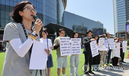 문화연대·우리만화연대 등 문화예술단체는 도서전 첫날인 14일 오전 기자회견을 열고, "블랙리스트 실행자"인 오씨의 홍보대사 위촉을 강력히 규탄했다.
