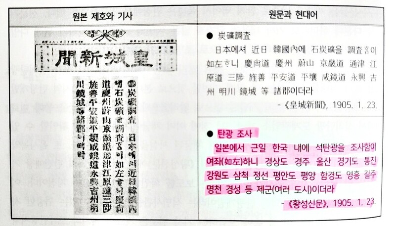 황성신문은 기사에서 강원도 삼척·정선을 포함해 전국의 탄전지대 이름을 정확히 표기했다.