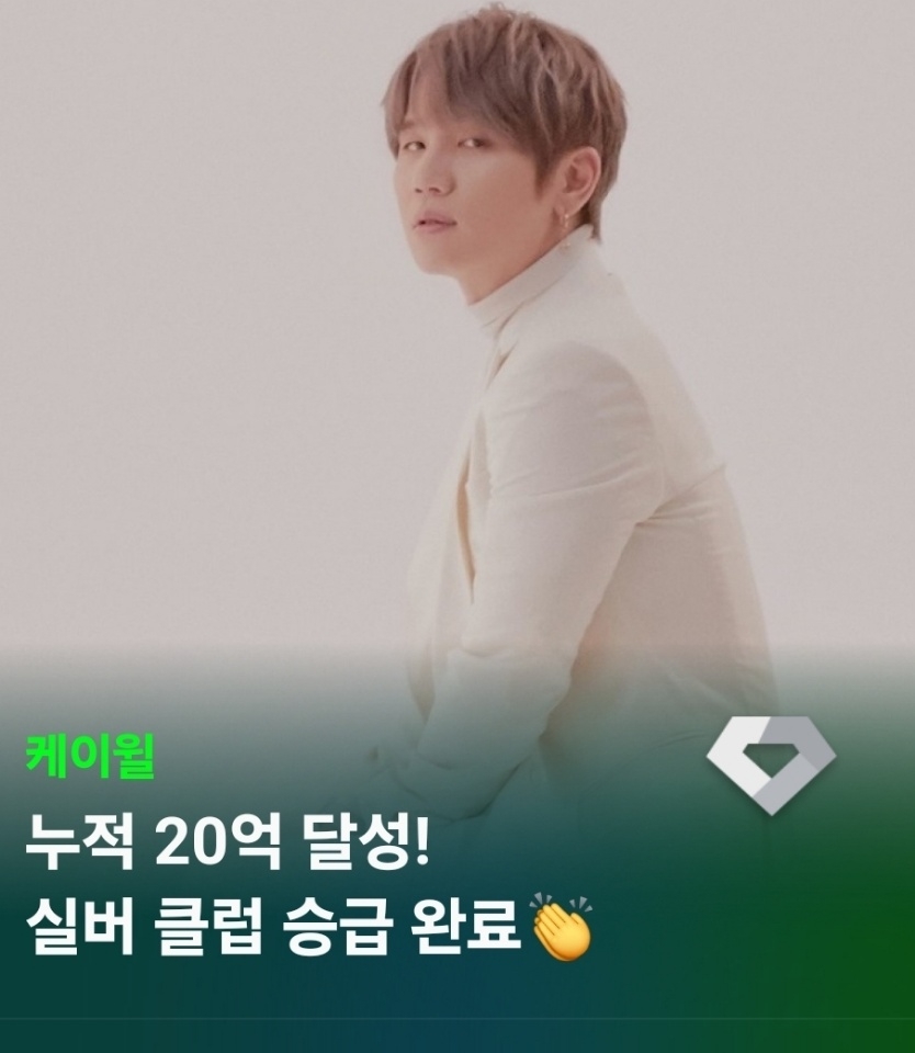 14일 멜론에 따르면 케이윌은 데뷔 후 누적 스트리밍 횟수가 20억∼50억회 사이인 아티스트를 기념하는 멜론의 전당 '빌리언스 실버 클럽'에 이름을 올렸다.
