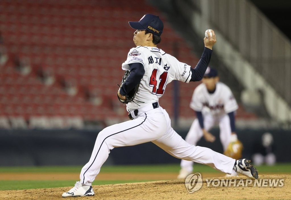 | ▲ In this file photo from Oct. 15, 2020, Chae Ji-seon of the Doosan Bears pitches against the Hanwha Eagles in the top of the ninth inning of a Korea Baseball Organization regular season game at Jamsil Baseball Stadium in Seoul. (Yonhap) |