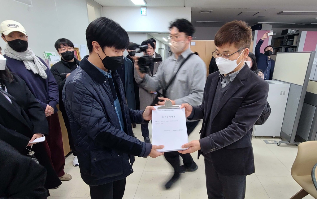 | ▲ 시정토론 청구 서명부 전달 [촬영 이재현] |