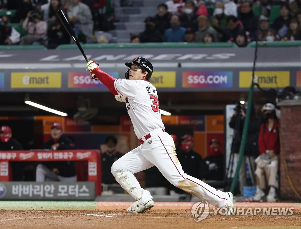Two games in, the right fielder has committed a couple of gaffes on defense already in the series against the Kiwoom Heroes. In Wednesday's Game 2, Han and center fielder Choi Ji-hoon got their calls mixed up and let a fly ball drop between them in right-center field for a double. The Heroes ended up scoring just one run in that inning, as the Landers prevailed 6-1.