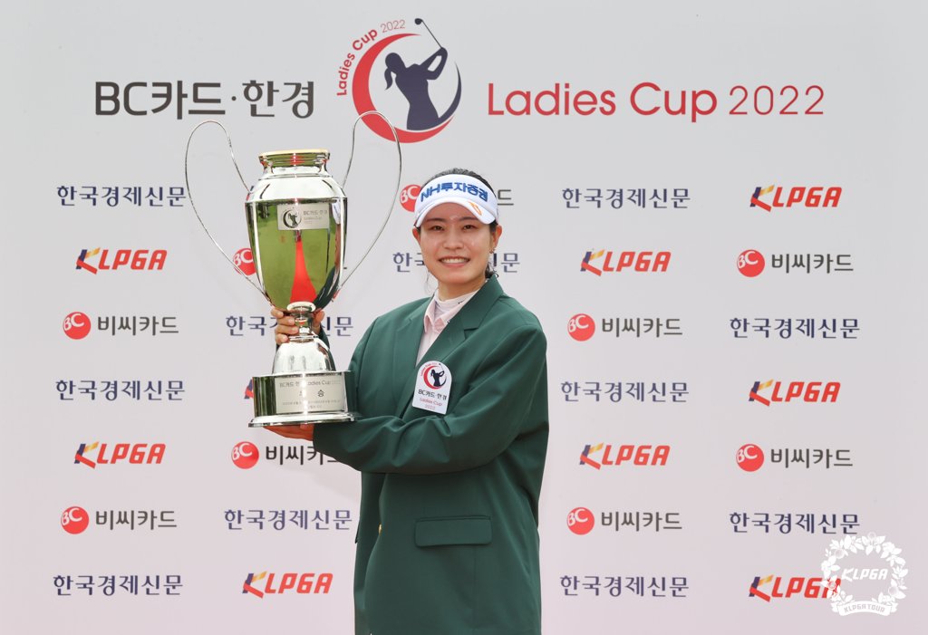 | ▲ 박민지, 'BC카드-한경 레이디스컵 2022' 우승 (서울=연합뉴스) 박민지가 26일 경기 포천에 위치한 포천힐스CC에서 열린 'BC카드-한경 레이디스컵 2022' FR에서 우승 후 트로피를 들고 기념 촬영하고 있다. 2022.6.26 [KLPGA 제공. 재판매 및 DB 금지] photo@yna.co.kr |