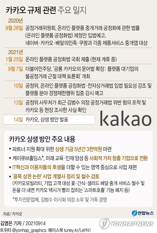 | ▲ [그래픽] 카카오 규제 관련 주요 일지 (서울=연합뉴스) 김영은 기자 = 0eun@yna.co.kr 트위터 @yonhap_graphics 페이스북 tuney.kr/LeYN1 |