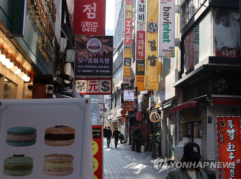 | ▲ This photo, taken Nov. 15, 2021, shows a side street full of restaurants and eateries in the shopping district of Myeongdong in central Seoul. (Yonhap) |