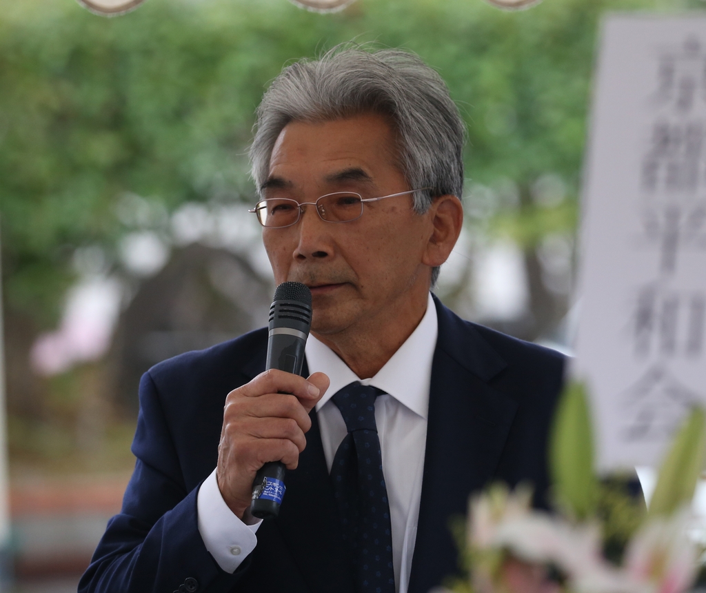 | ▲ 발언하는 아마키 사무국장 (쓰야마[일본 오카야마현]=연합뉴스) 이세원 특파원 = 아마키 나오토(天木直人) 교토평화모임 사무국장이 8일 일본 오카야마현 쓰야마시의 귀 무덤 앞에서 열린 진혼제에서 발언하고 있다. 2021.11.8 |