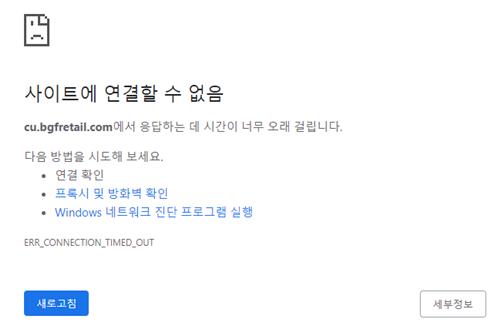 | ▲ CU 공식 홈페이지 접속 불가 상태 [CU 공식 홈페이지 캡처. 재판매 및 DB 금지] |