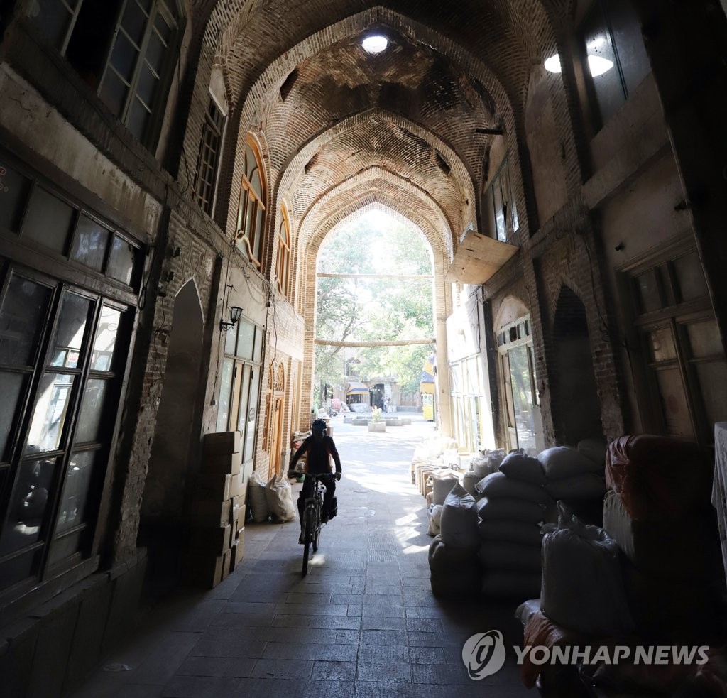 | ▲ 이란 타브리즈 대시장의 아치형 건물 (타브리즈[이란]=연합뉴스) 이승민 특파원 = 4일(현지시간) 이란 동아제르바이잔주(州) 타브리즈 그랜드 바자르(대시장)에서 한 주민이 자전거를 타고 있다. 2022.9.7 logos@yna.co.kr |