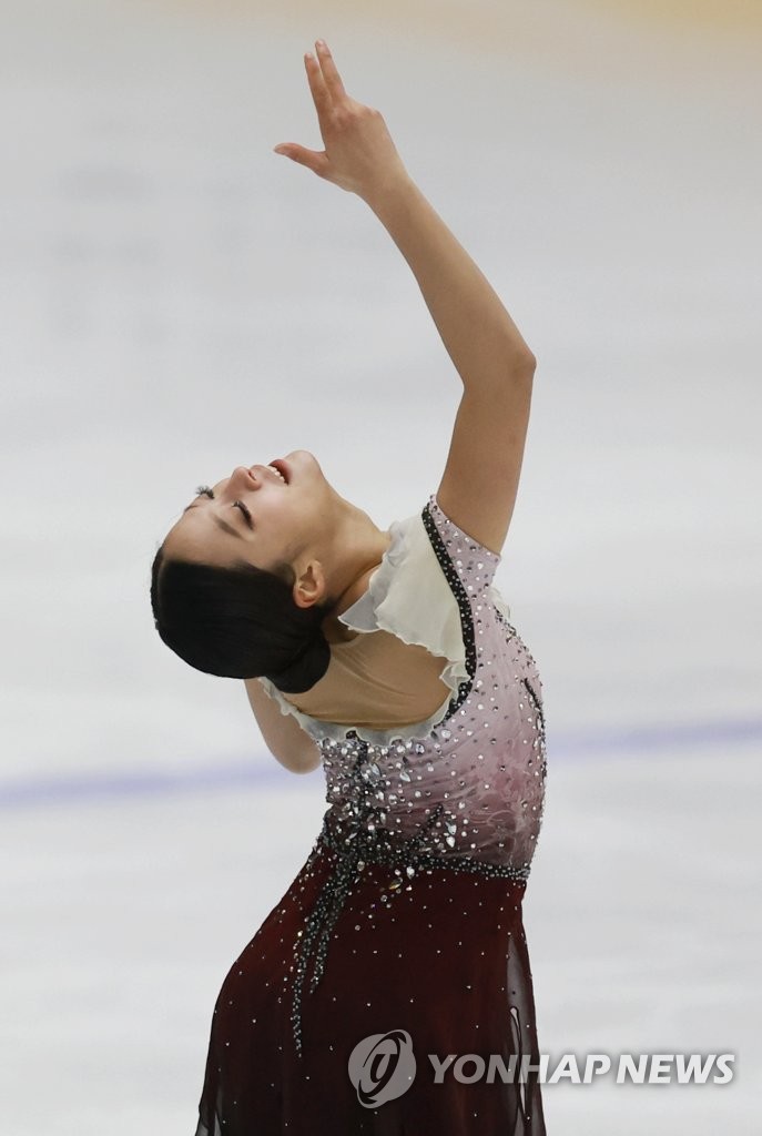 | ▲ South Korean figure skater You Young performs her free skate program in the women's singles during the second leg of the Beijing Winter Olympic trials at Uijeongbu Indoor Ice Rink in Uijeongbu, some 20 kilometers north of Seoul, on Jan. 9, 2022. (Yonhap) |