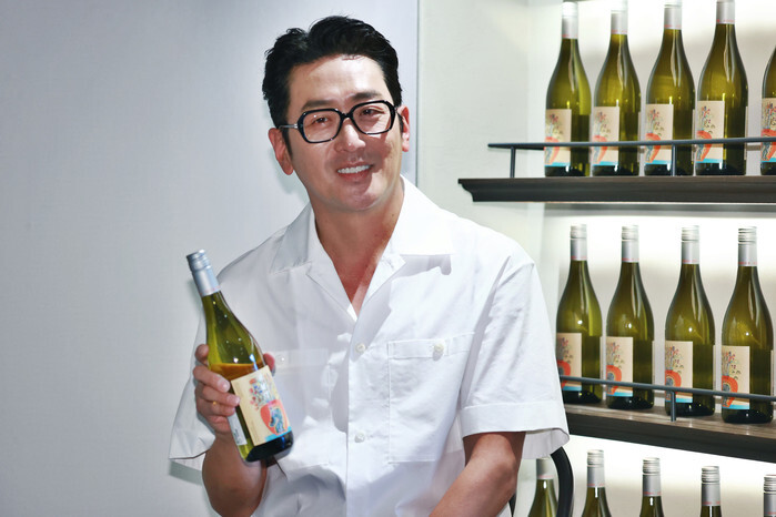 South Korean actor Ha Jung-woo poses for a photo during a publicity event in Seoul on Aug. 16, 2024, to promote the limited-edition white wine brand Call Me Later with Vino Paradise, designed the wine label himself. (Yonhap)