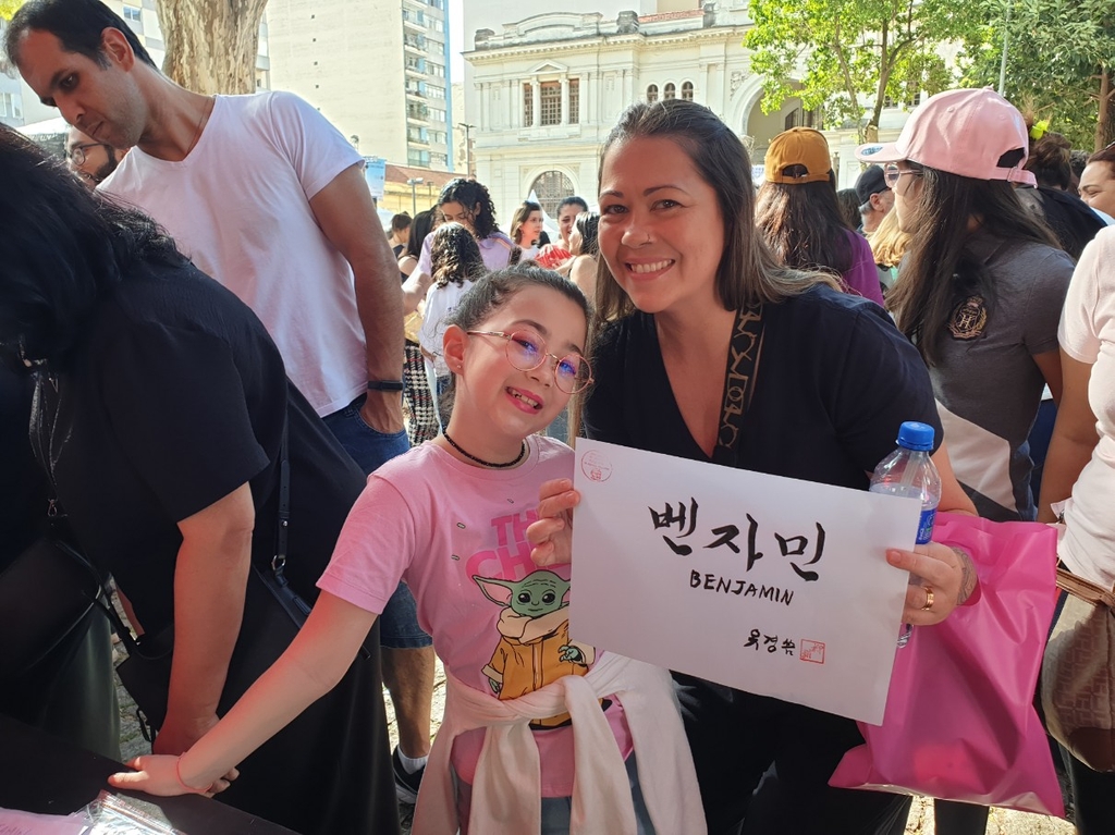 | ▲ 브라질 상파울루에서 열린 제16회 한국 문화의 날 행사 (상파울루=연합뉴스) 김지윤 통신원 = 브라질 상파울루에서 19일 열린 한국 문화의 날 행사에서 브라질 사람들이 한국어로 쓰인 이름을 들고 웃고 있다. |