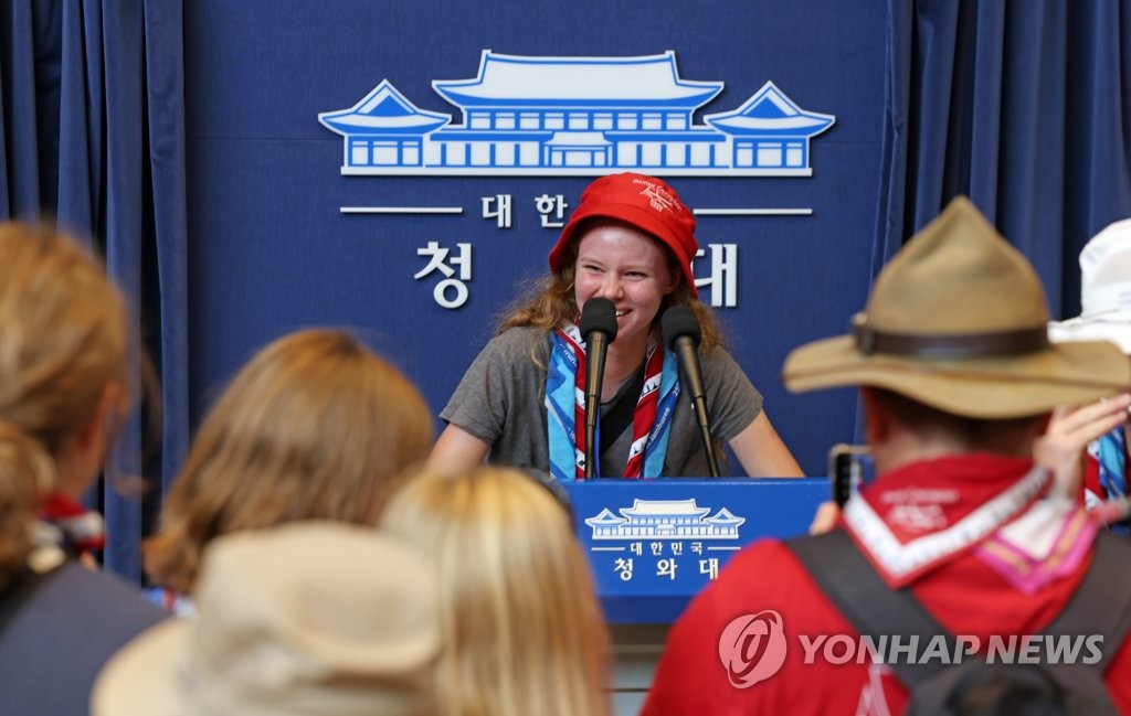 (서울=연합뉴스) 박상돈 기자 = 문화체육관광부와 한국관광공사는 9일 새만금 세계스카우트 잼버리 대회에 참가한 덴마크와 노르웨이 스카우트 대원들이 한국관광홍보관과 청와대를 관람했다고 밝혔다.