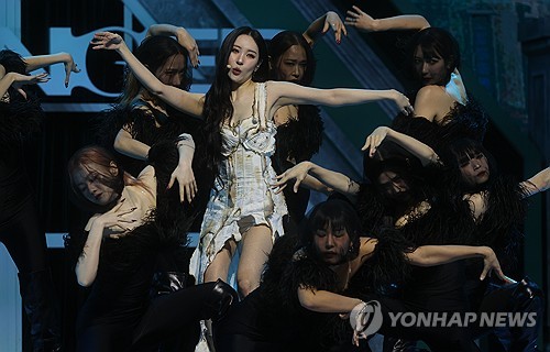 | ▲ K-pop soloist Sunmi performs her new single "Stranger" during a media showcase for the album in Seoul on Oct. 17, 2023. (Yonhap) |