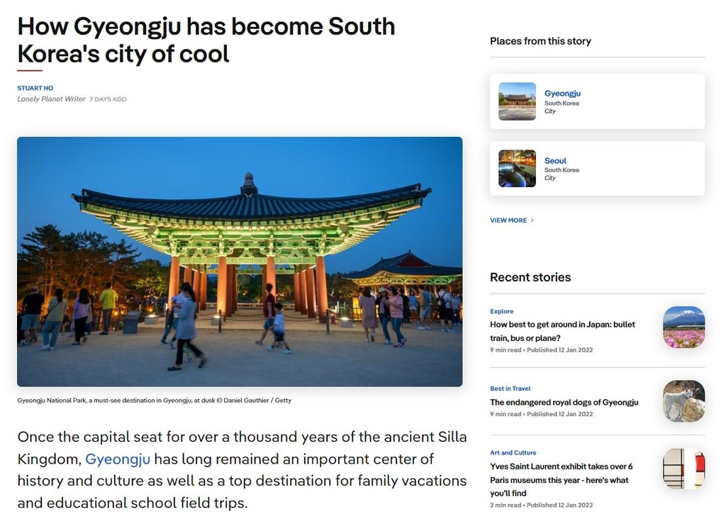 | ▲ 론리 플래닛 웹사이트 중 경주 소개 부분 발췌 [경주시 제공. 재판매 및 DB 금지] |