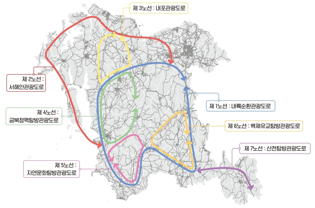 | ▲ 충남연구원이 만든 주제별 관광도로 7개 노선 [충남연구원 제공. 재판매 및 DB 금지] |