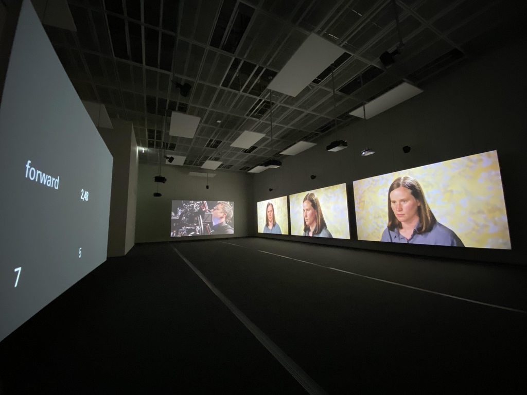 전시장 중앙에는 책상과 의자가 줄지어 놓여있다. 천장에는 LED 스크린 속으로 빨려 들어간 듯 인간 하체만 매달려 있다. 이 작업을 중심으로 전시는 실제와 가상의 경계에 존재하는 오늘날 인간의 모습을 조명한다.