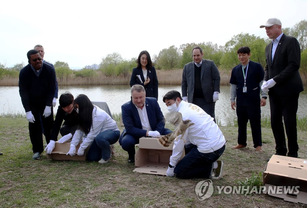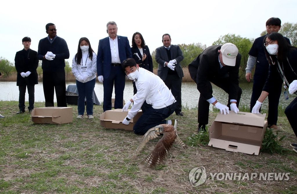 | ▲ 자연의 지속 확인하는 엑스포 실사단 (부산=연합뉴스) 손형주 기자 = 국제박람회기구(BIE) 실사단이 4일 오후 부산 사하구 을숙도생태공원을 찾아 치료가 끝난 새를 자연으로 돌려보내는 체험을 하고 있다. 2023.4.4 [공동취재] handbrother@yna.co.kr |