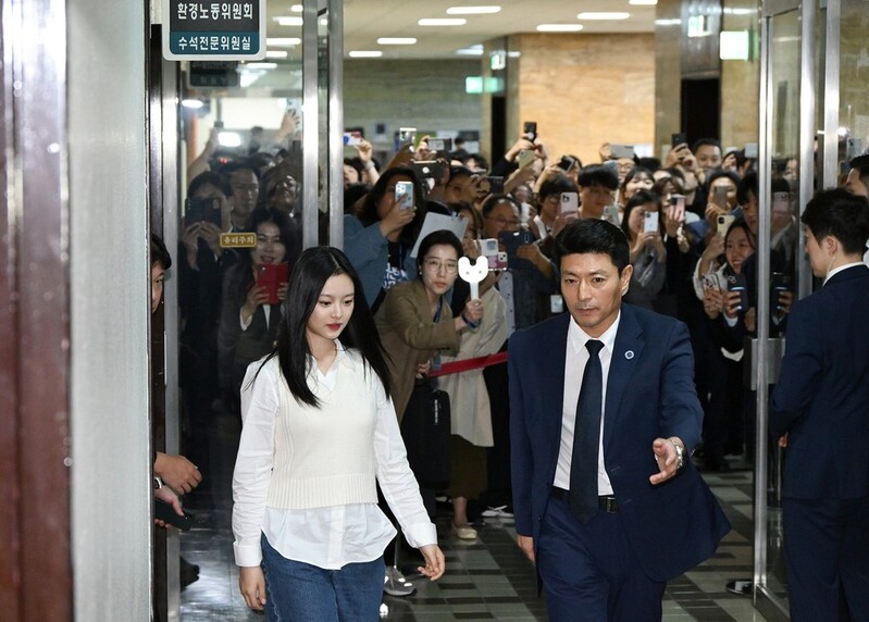 (서울=연합뉴스) 진성철 기자 = 걸그룹 뉴진스의 멤버 하니가 국정감사에 출석하자 국회가 떠들썩했다.
