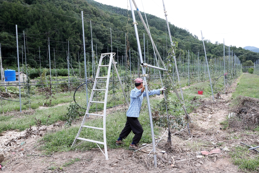 | ▲ 사과밭 복구 중인 농부 [촬영 손대성] |