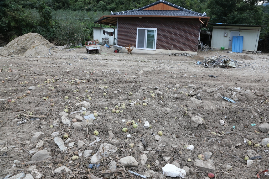 한 80대 주민은 "사과나무 20여 그루가 떠내려갔고 나머지 20여 그루는 침수돼 제대로 살리기 어려워서 폐원하려고 한다"며 "추석이고 뭐고 마음이 어수선하다" 말했다.