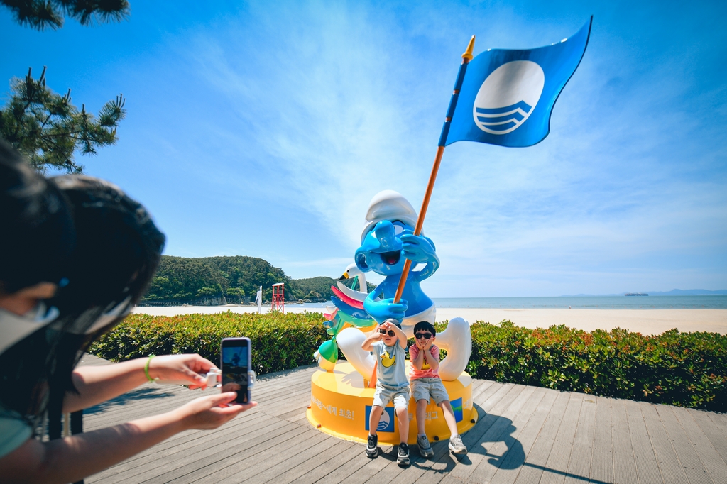 부산 다대포해수욕장에 뜬 스머프…'친환경 시설' 국제 인증