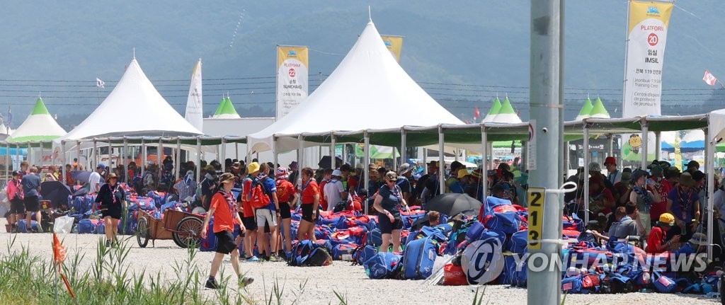 | ▲ 퇴소 준비하는 영국 잼버리 참가자들 (부안=연합뉴스) 김주형 기자 = 5일 오전 전북 부안군에서 열리고 있는 2023 새만금 세계스카우트잼버리 야영장에서 영국 참가자들이 퇴소 준비를 하고 있다. 2023.8.5 kjhpress@yna.co.kr |