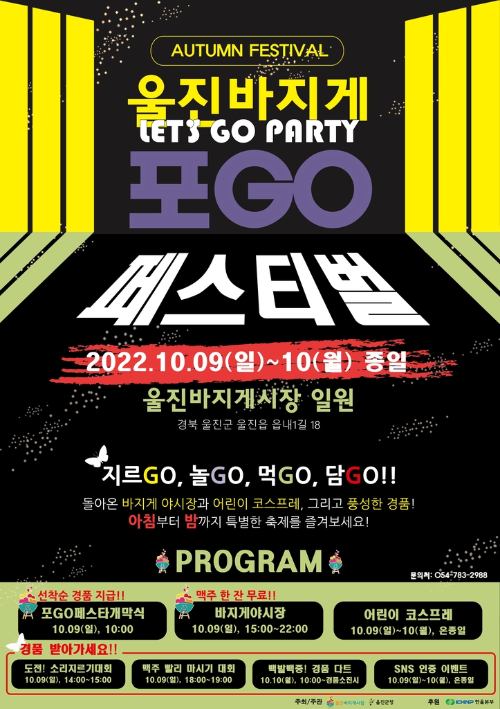 (울진=연합뉴스) 손대성 기자 = 경북 울진군은 9일부터 10일까지 울진읍 바지게시장에서 '울진바지게 포GO(고) 페스티벌'을 개최한다고 4일 밝혔다.