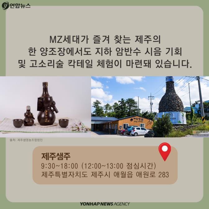 MZ세대가 즐겨 찾는 제주의 한 양조장에서도 지하 암반수 시음 기회 및 고소리술 칵테일 체험이 마련돼 있습니다.