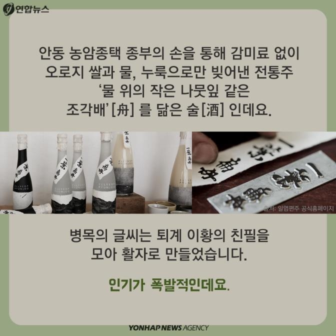 "홈페이지에 (일엽편주 구매 창이) 뜨자마자 재빠르게 클릭해야 한 병, 두 병 살 수 있을 정도예요. 병 디자인이 독특해서 좋은 자리에 많이 올라가는 술 중의 하나입니다."- 이현주 전통주 소믈리에