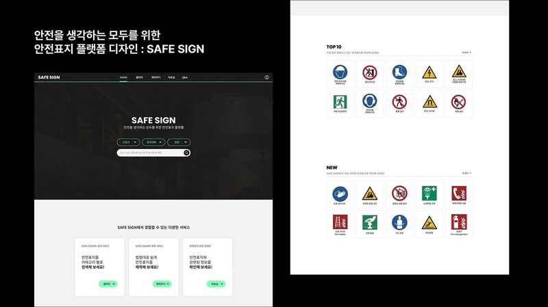 대상작은 '안전을 생각하는 모두를 위한 안전표지 플랫폼 디자인'이다. 산업현장의 안전표지 활용을 돕는 플랫폼으로 산업군, 중대 재해, 법령 키워드를 바탕으로 한 정보를 제공해 사용자 맞춤형 안전표지를 제작할 수 있도록 한다.