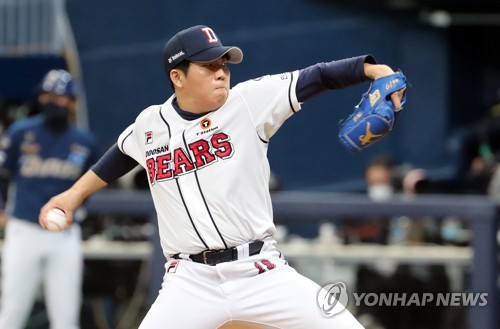 SEOUL, Nov. 21 (Yonhap) -- A 20-year-old right-hander got the upper hand in an unlikely pitching duel against a 21-year-old righty in a Korean Series game on Saturday, with both pitchers making their first career postseason starts.