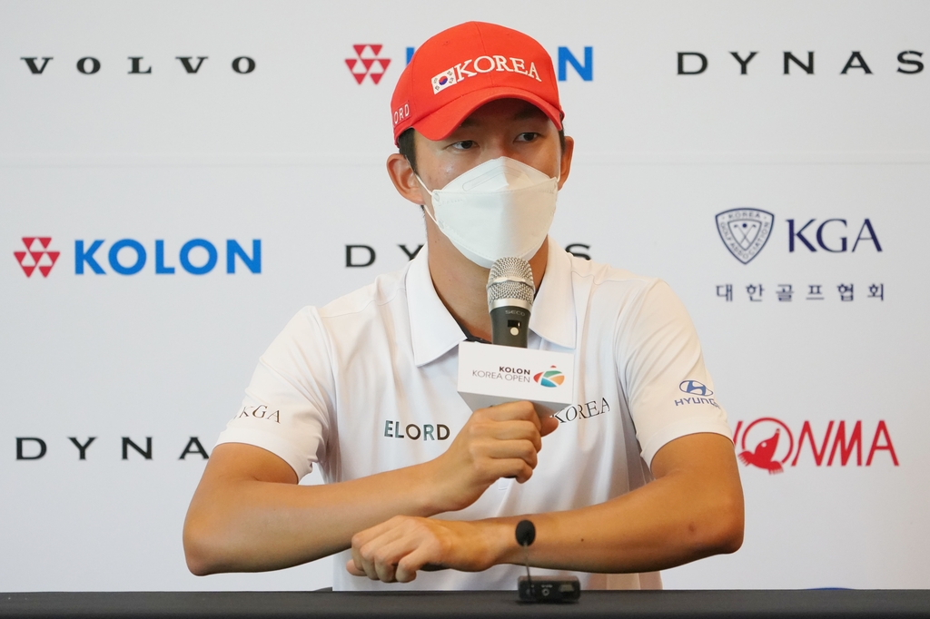 | ▲ 1라운드 마치고 인터뷰하는 김백준 [코오롱 한국오픈 조직위원회 제공. 재판매 및 DB 금지] |